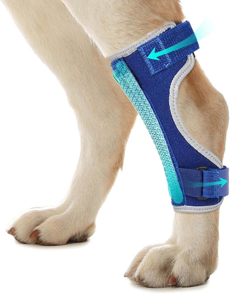 Dog Leg Braces for Back Leg- Hock and Ankle Joint Support Brace for Rear Legs with 2 Metal Strips, Reflective Edging for Sprain, Injury, Arthritis, Wound Recovery,Blue,S