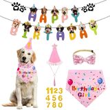 Legrape Dog Birthday Bandana for Medium Large Dogs, Dog Birthday Banner Numbers Hat Bow Tie for Dog Party Decorations