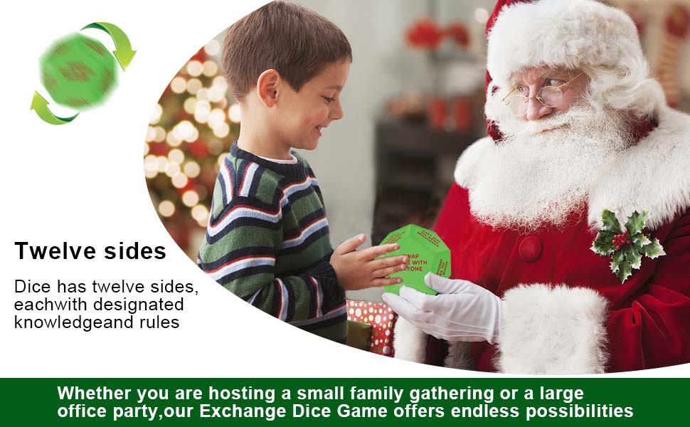 【Unleash Holiday Fun】Get ready to elevate your Christmas celebrations with our Santa Swap Gift Exchange Dice! Featuring 12 unique sides, each roll adds an exciting twist to the gift exchange, ensuring laughter and enjoyment for everyone, regardless of age.