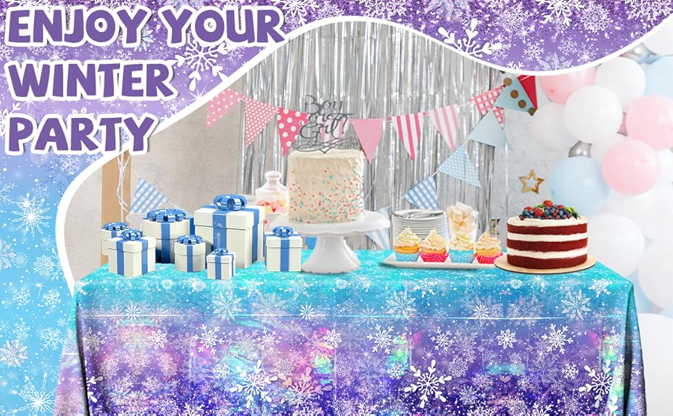 EASY TO CLEAN: The winter birthday tablecloth is waterproof and easy to clean, preventing your table from getting dirty with food and drinks. You can throw away winter table cloths after the party , which will give you more time to spend with family and friends