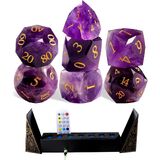 Crafted from natural gemstones and finished with diamond cutting techniques, this 7-piece D&D dice set blends practicality for tabletop gaming with high-end collectible value. It is an ideal choice for Dungeons & Dragons (D&D) players, tabletop role-playing enthusiasts, and gemstone collectors alike. The set includes 7 core polyhedral dice: d4 (4-sided), d6 (6-sided), d8 (8-sided), d10 (10-sided), d10 (10-sided with 00-90 double-digit marking), d12 (12-sided), and d20 (20-sided), fully meeting all in-game needs such as numerical calculations and skill checks.