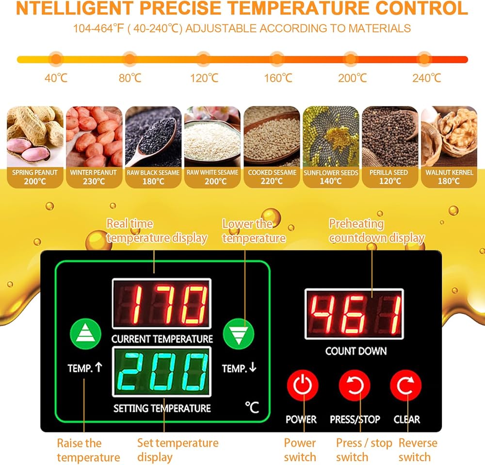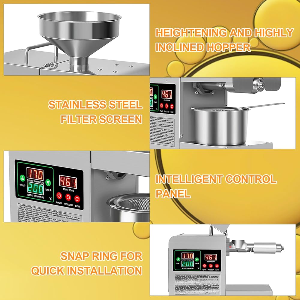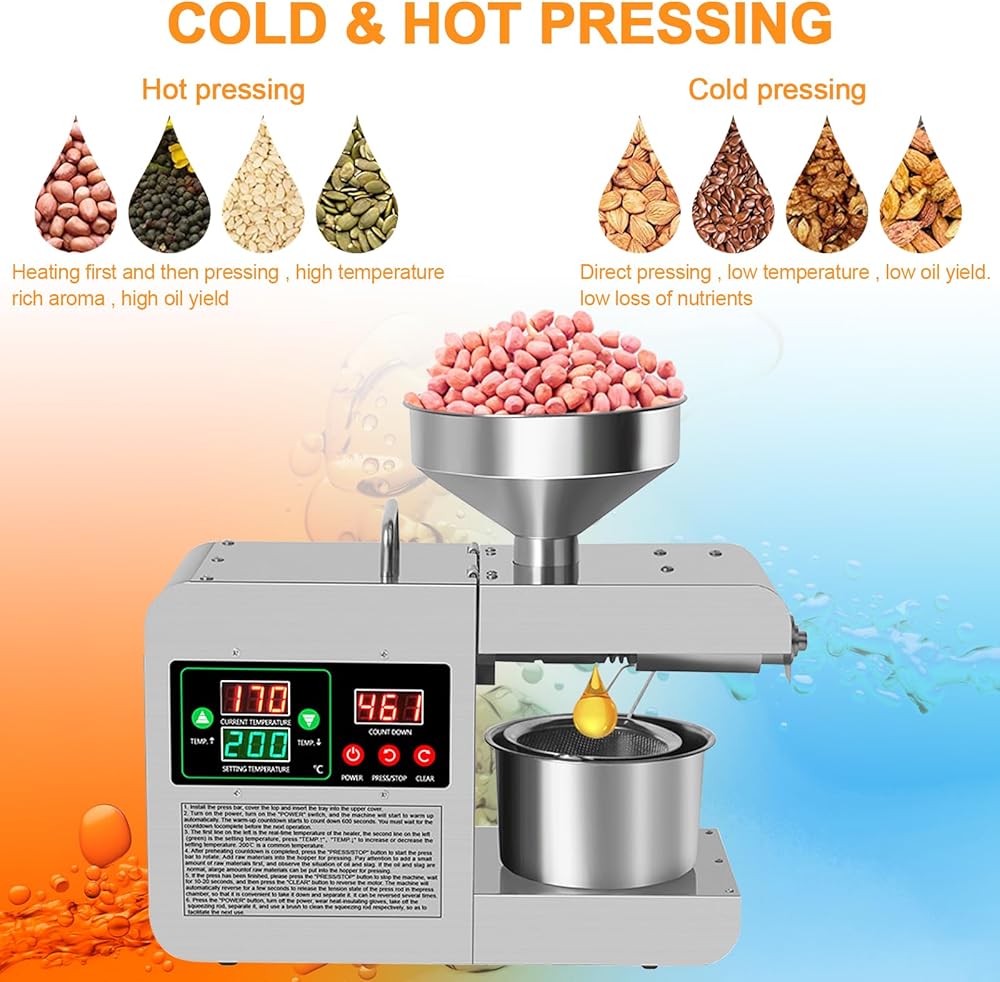 [TWO MODES] The Oil Presser Supports Two Modes Of Oil Pressing: Cold And Hot. Cold Pressing Better Retains The Nutritional Value Of The Oil; Hot Pressing Can Squeeze The Oil More Efficiently, resulting in a rich aroma and high oil yield.
