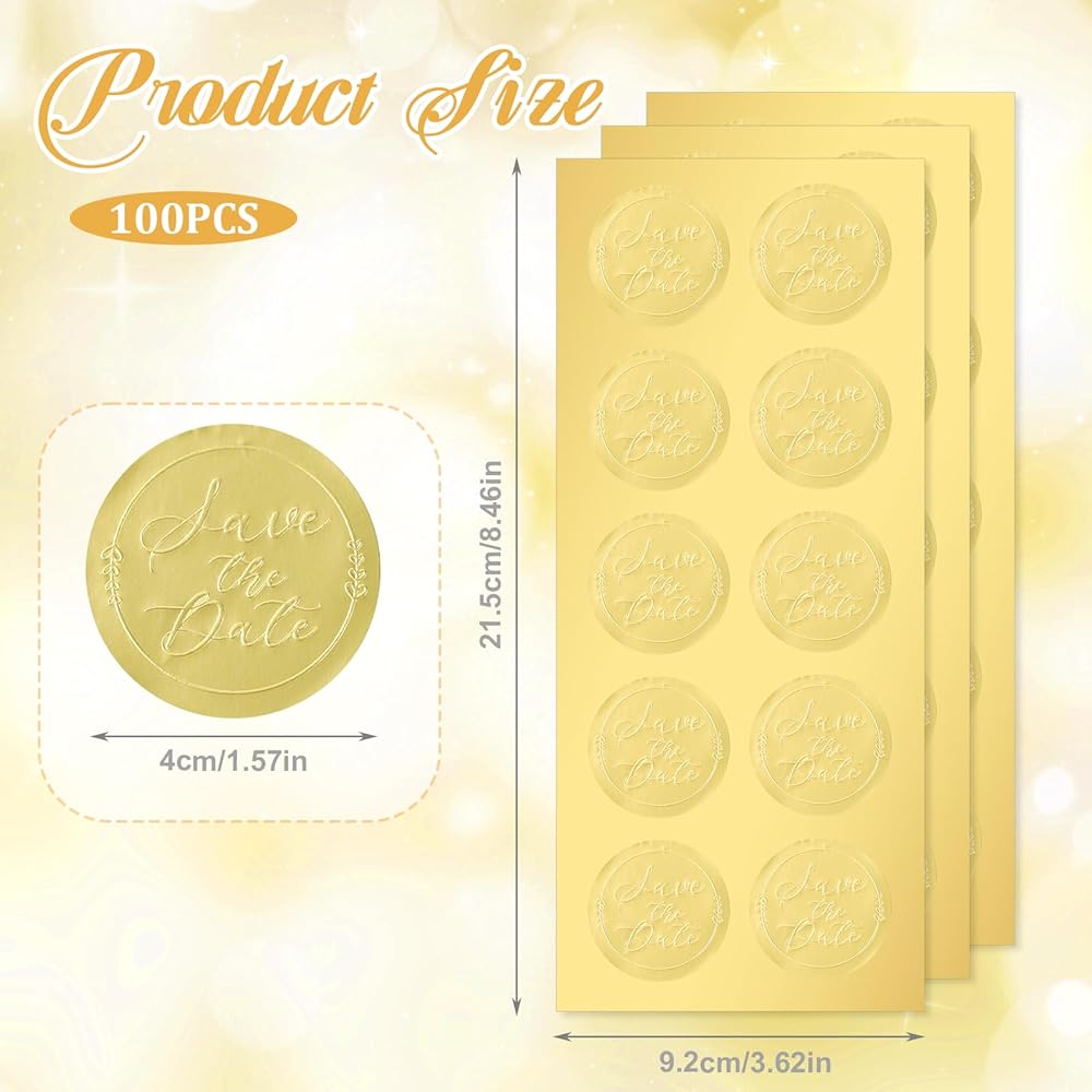 100 x Save The Date Envelope Seals, Embossed Gold Foil Labels Save The Date Stickers Elegant Wedding Invitation & Party Favor Labels Envelope Seals Stickers Metallic Foil Tags, 1.6 Inch