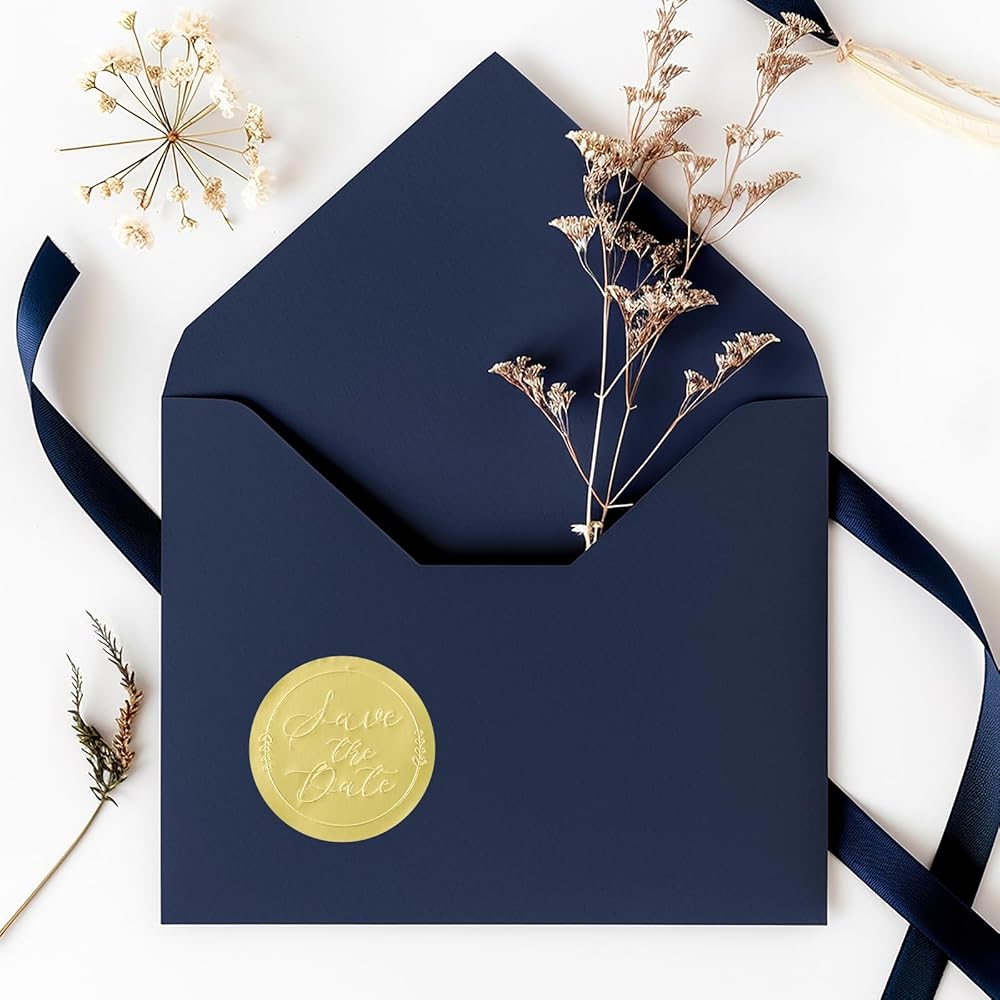 Elegant Gold and Silver Foil Embossing: Our "Save the Date" envelope seals feature shimmering gold foil embossed text, adding a sophisticated, luxurious touch to your stationery.