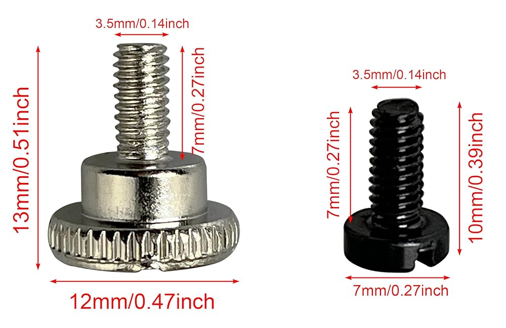 Thumbscrews are designed with a threaded large head for non-slip, non-scratch use. Ergonomically designed for easy adjustment and tightening with maximum control and flexibility, they will not loosen over time.