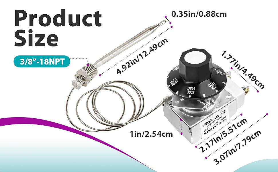 Product Specifications: This millivolt thermostat 00-913153 is engineered for deep fryers, featuring a precise 200-400°F temperature range and a standard 3/8"-18 NPT thread connection. It is for millivolt systems, not for electric systems