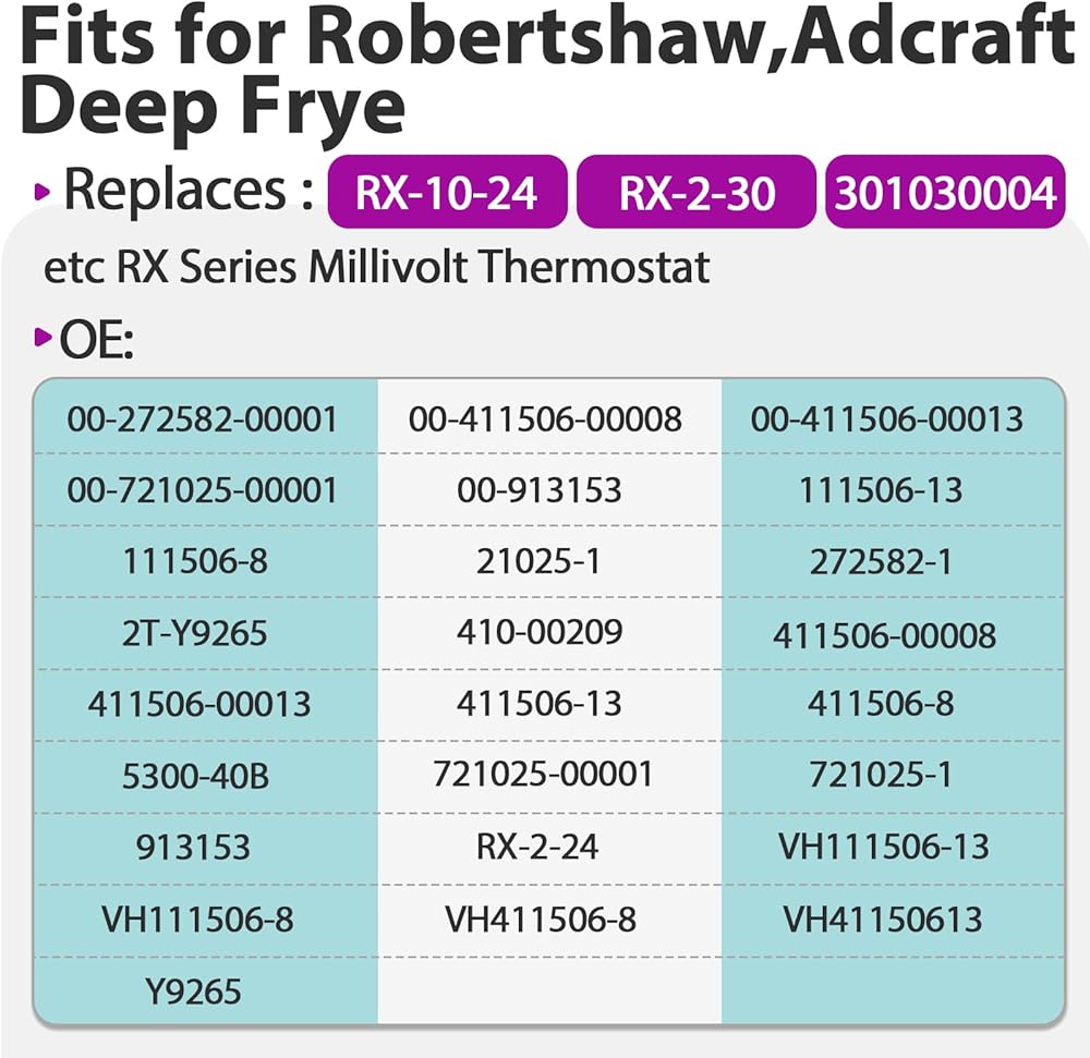Wide Compatibility: This thermostat 00-913153 compatible with Robertshaw, Replacement for Atosa 301030004 RX-10-24 RX-2-24 RX-2-30 Thermostat RX Series
