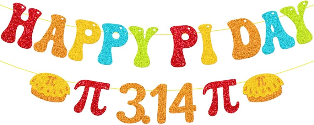 Pi Day, the Most Delicious Math Celebration! Bring Pi Day to life with a fun-filled, glittery banner that features playful “HAPPY PI DAY” lettering, along with pie symbols and the iconic π symbol. Whether you're in the classroom or throwing a Pi & Pie Party, this banner makes learning math as fun as eating pie!