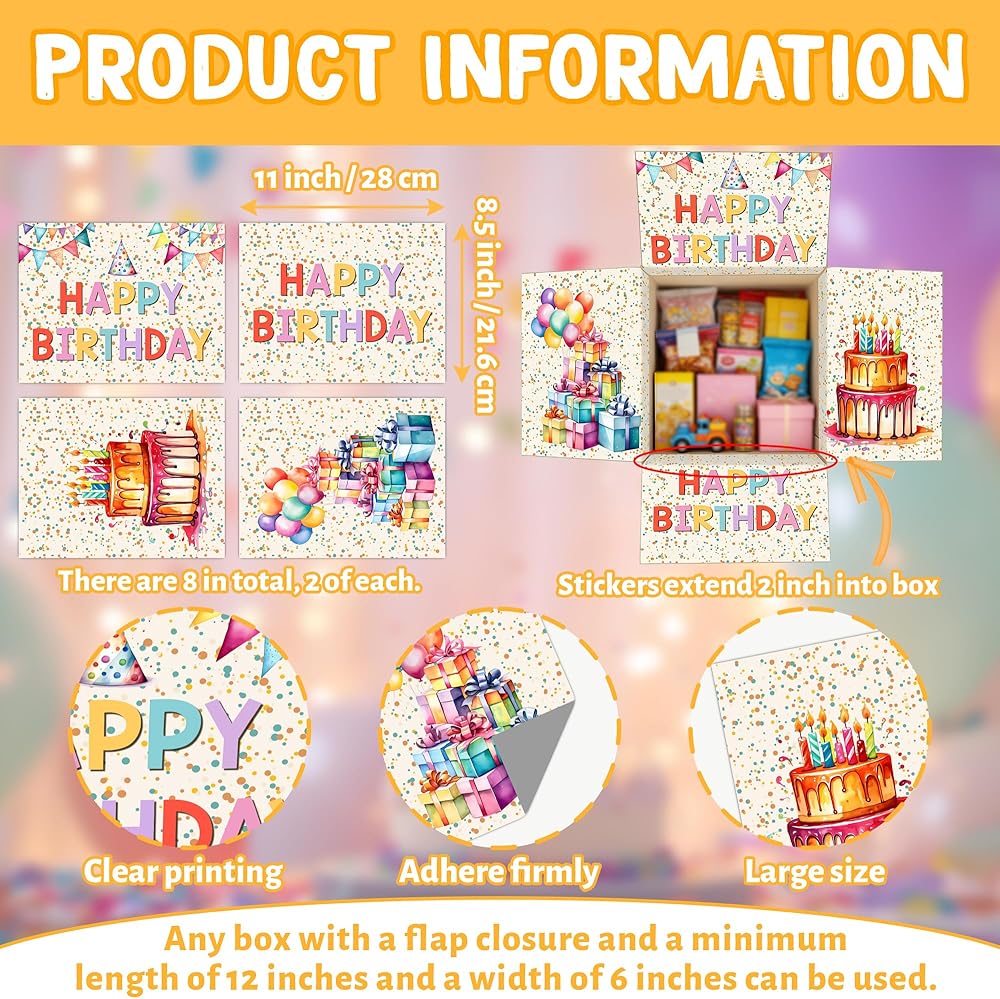 Perfect Size: Each birthday sticker measures 8.5x11 inches, making it ideal for most gift boxes and ensuring that your presents stand out beautifully, regardless of the occasion