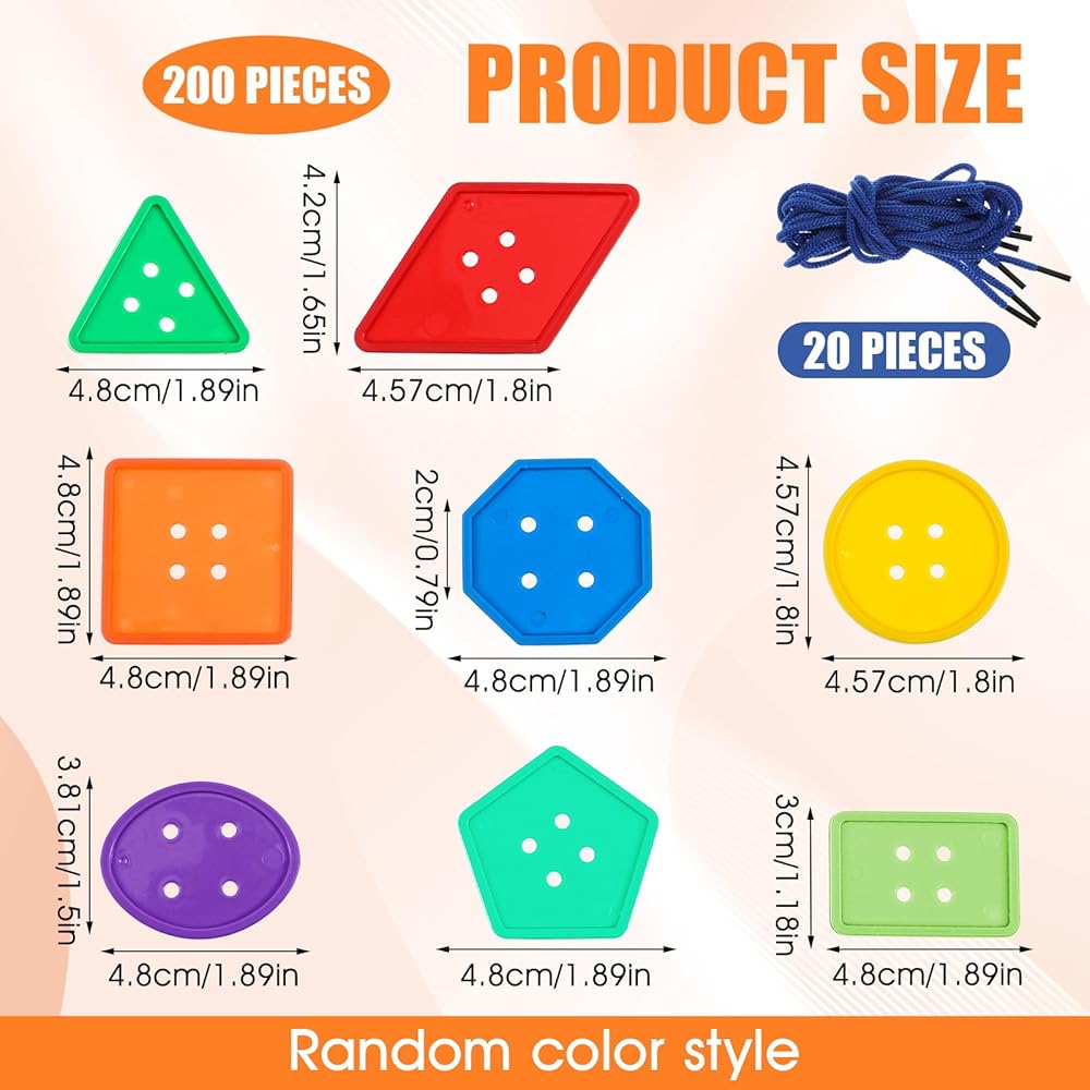 Unleash creativity with our 200-piece shape buttons collection! This comprehensive set features vibrant shaped buttons in multiple geometric designs, perfect for buttons for crafts assorted shapes projects. Our colorful buttons for crafts showcase bright, fade-resistant colored buttons that inspire artistic expression. These big buttons measure 1.4-1.9 inches with safe edges, while our large buttons include 20 cotton strings (20.5 inches each) for endless crafting possibilities. Premium craft buttons made from durable PP plastic ensure long-lasting performance for educational activities, DIY projects, and creative explorations that spark imagination and learning through play.