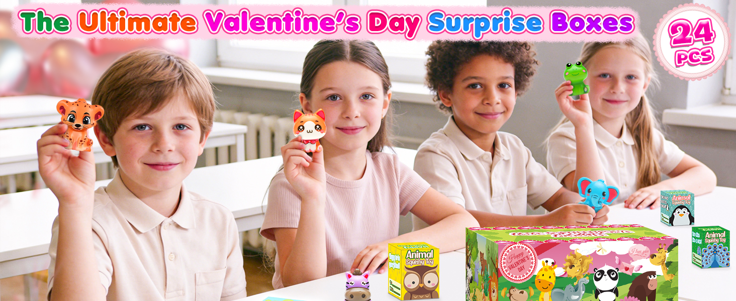 🌟Premium Quality & Safety for Kids :We prioritize child safety. Valentines day gifts for kids with squishies set are made from 100% non-toxic, BPA-free, and durable materials. The smooth surface can be easily wiped clean, ensuring a hygienic toy that lasts through countless squeezes and playtimes.