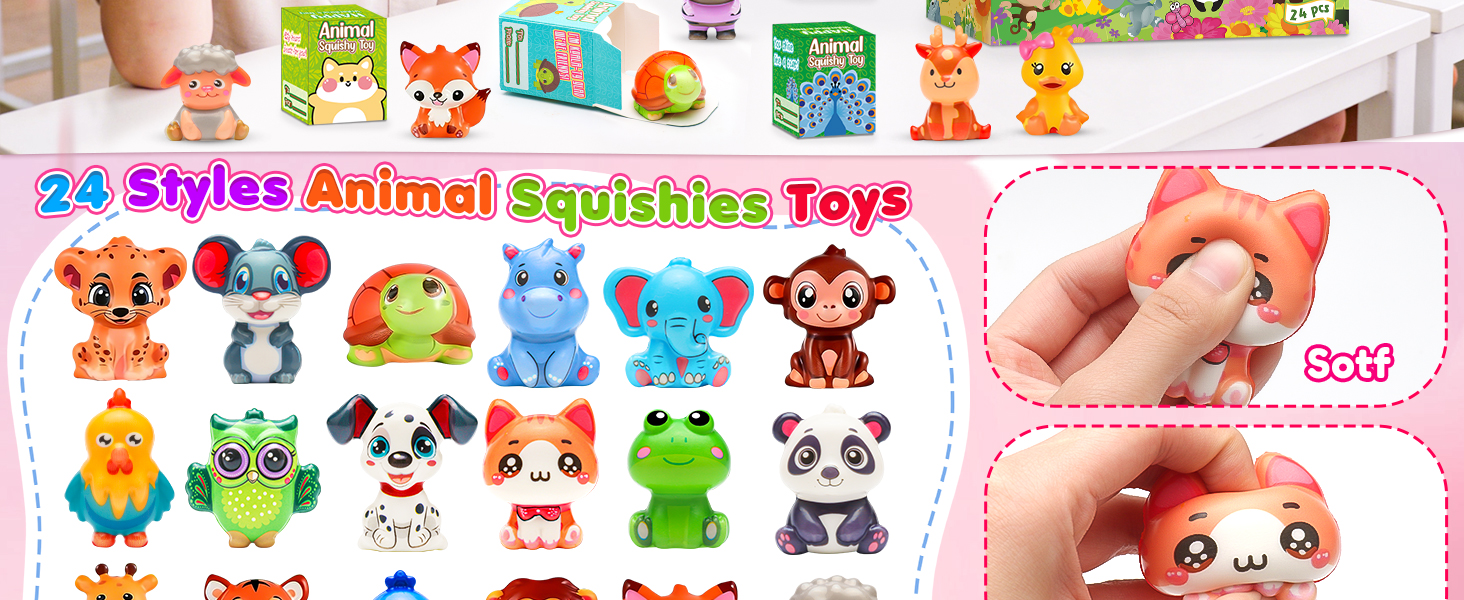 💖 24 Adorable Animals for Sensory Exploration:This valentines day gift sets for kids classroom features 24 distinct, brightly-colored animal squishies designed to engage the senses. Each super-soft, slow-rising toy provides calming tactile input, helping children focus, soothe anxiety, and develop fine motor skills through gentle, hands-on play.