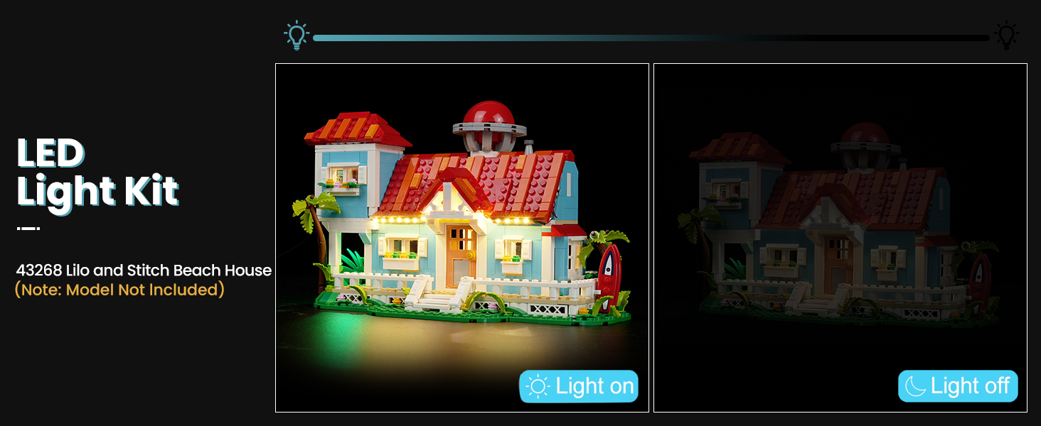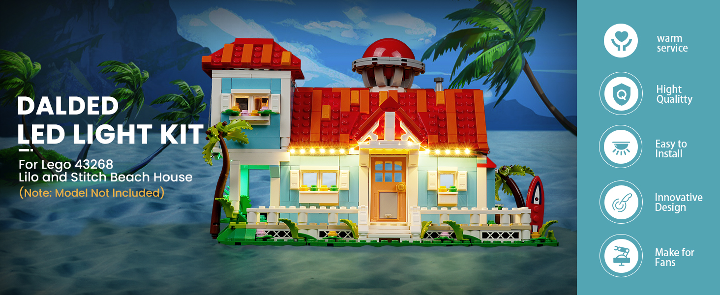 🏭Upgraded Led Light Kit - DALDED light set is used to light up the building blocks compatible with Lego Lilo and Stitch Beach House. DIY enhances the playability of your building set and brings it to life and interesting with vibrant lighting effects.