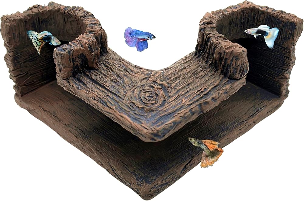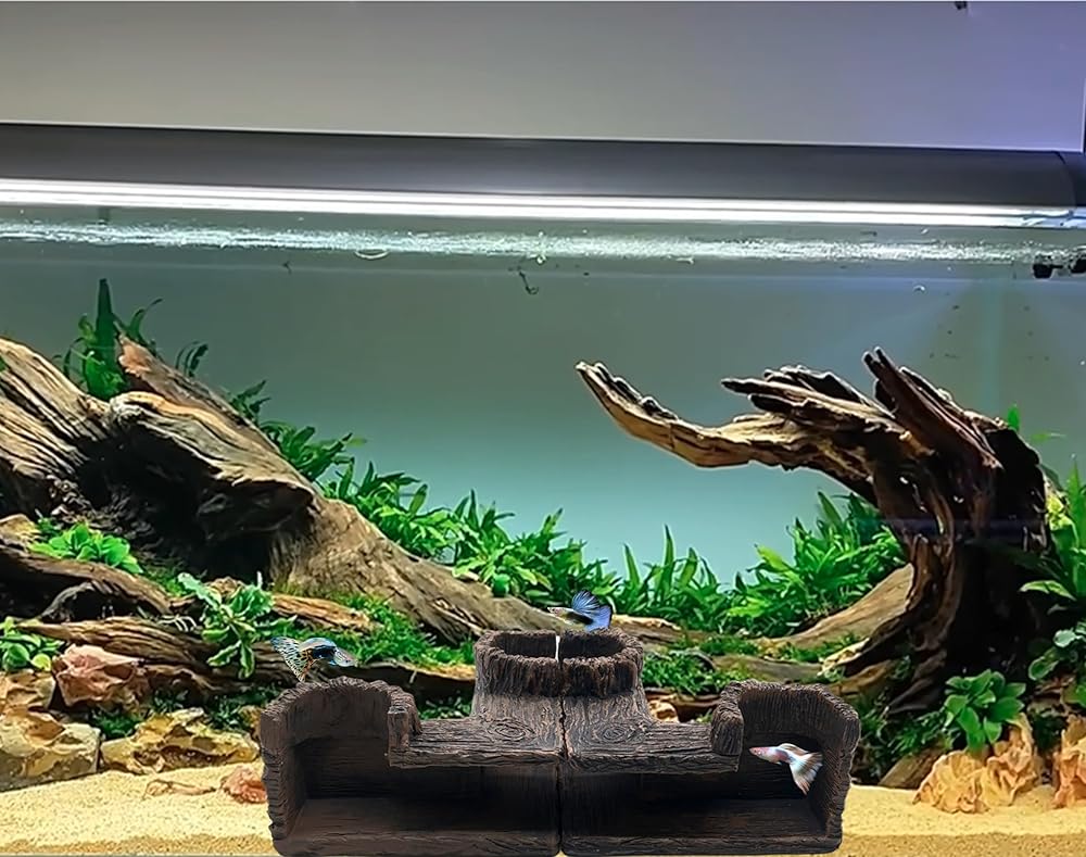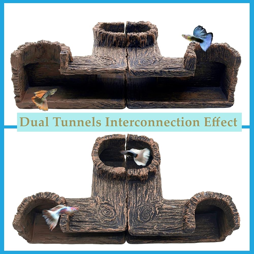 🐠 Made of non-toxic harmless resin ,Durable, nature, safe and eco-friendly.The natural resin hollow tree trunk tunnel ornament is great for nano beta fishes, shrimps and guppies