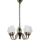 Delicate Tulip Shades – Features five frosted tulip glass shades that diffuse light beautifully, creating a warm, inviting atmosphere inside your miniature room.