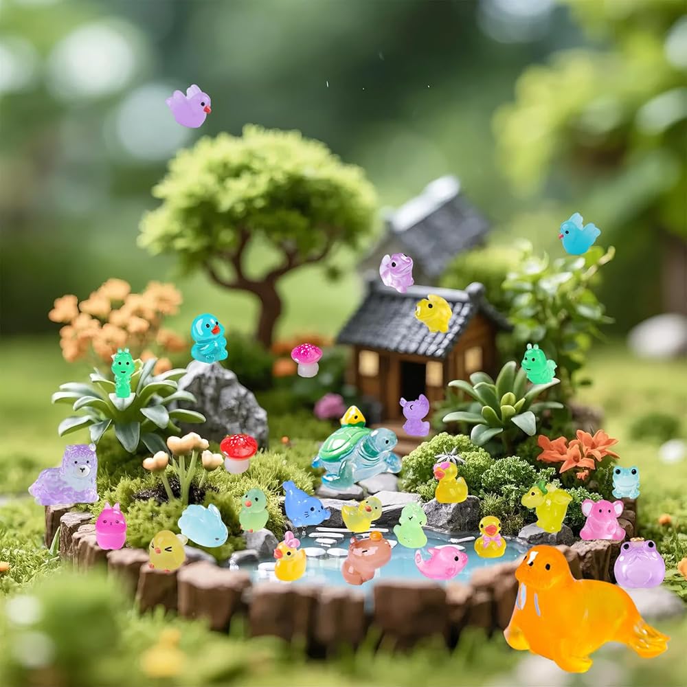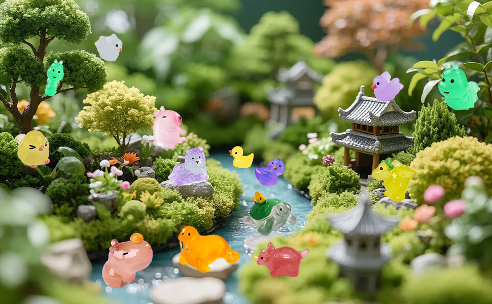 Perfect Gift for Any Occasion:These luminous miniature resin animals Ideal for birthdays,Easter, Halloween, Christmas, New Year's Day,holidays, you can use little animal to decorate your garden landscape,DIY miniature decorations,fish tank and aquarium decorations. or on refrigerator,cupboard,room,backpack,wait anywhere.This product is intended for use only by individuals aged 14 and above.