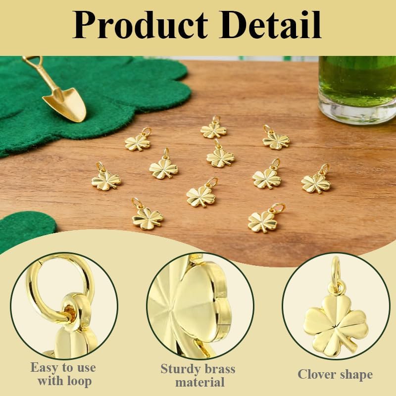 【Material & Quality】Crafted from durable alloy with a gold coating finish, these clover charm pieces are designed to maintain their luster over time. The materials ensure lasting durability and a lightweight feel, suitable for repeated use in jewelry making.