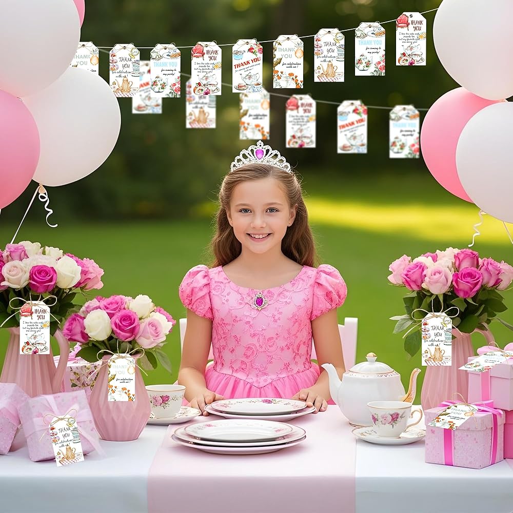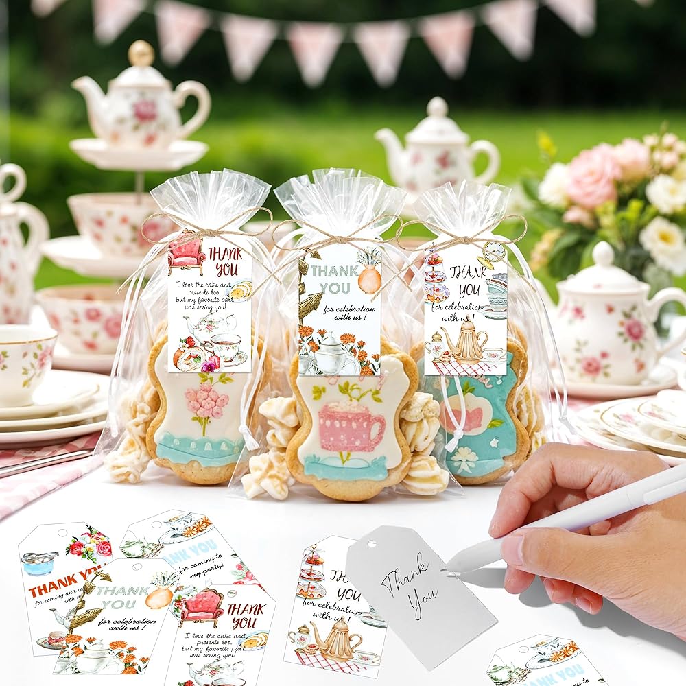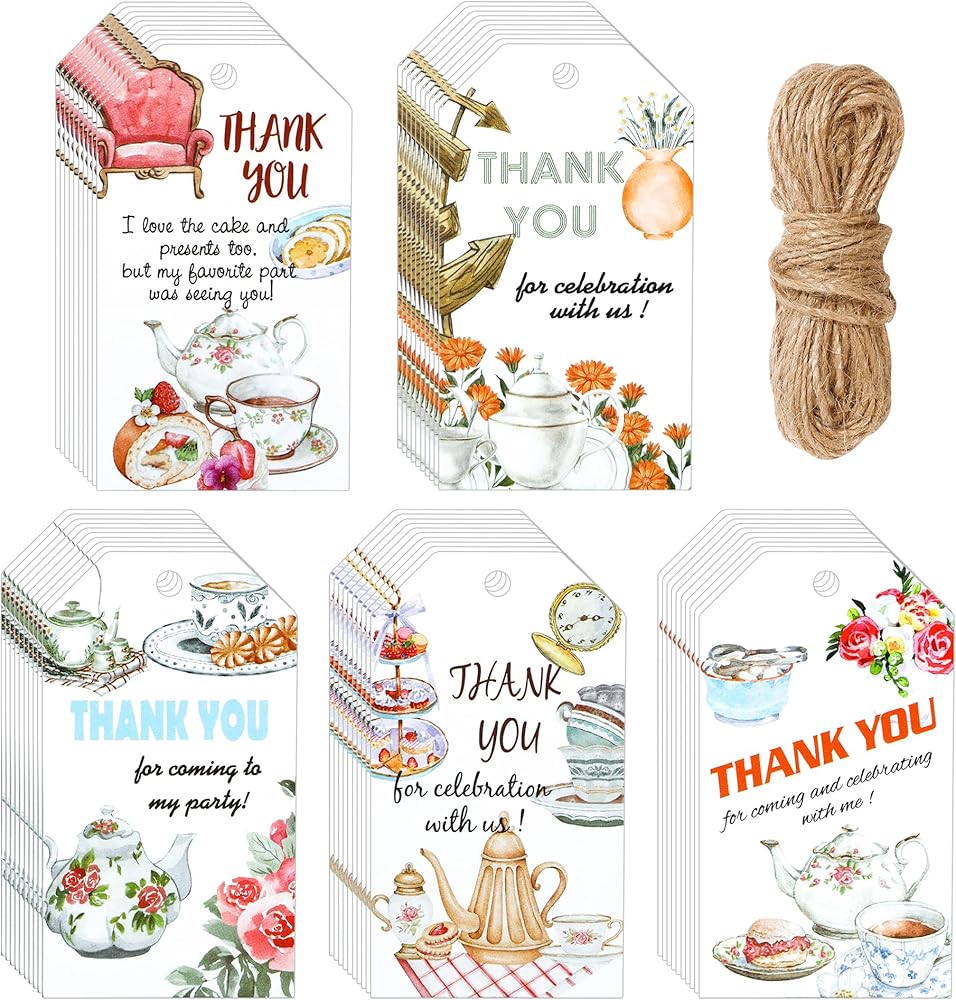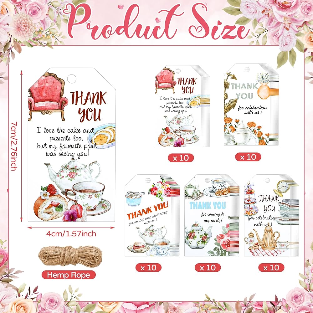 Package Includes: 50 x Tea Party Thank You Tags with Hemp Rope