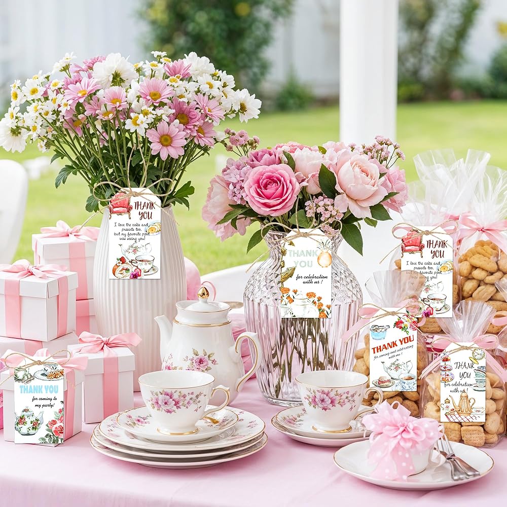 1. These tea floral thank you gift tags feature charming tea party design. The vivid and beautiful floral tea themed pattern perfect for adding a elegant atmosphere to your tea time party. Perfect for thanking your guests to be a part of your special day.
