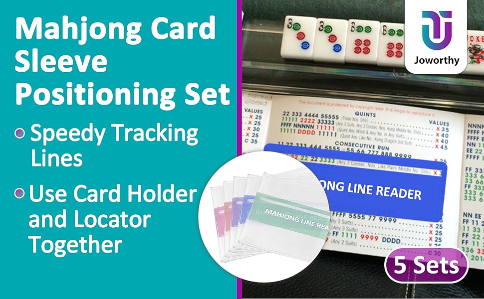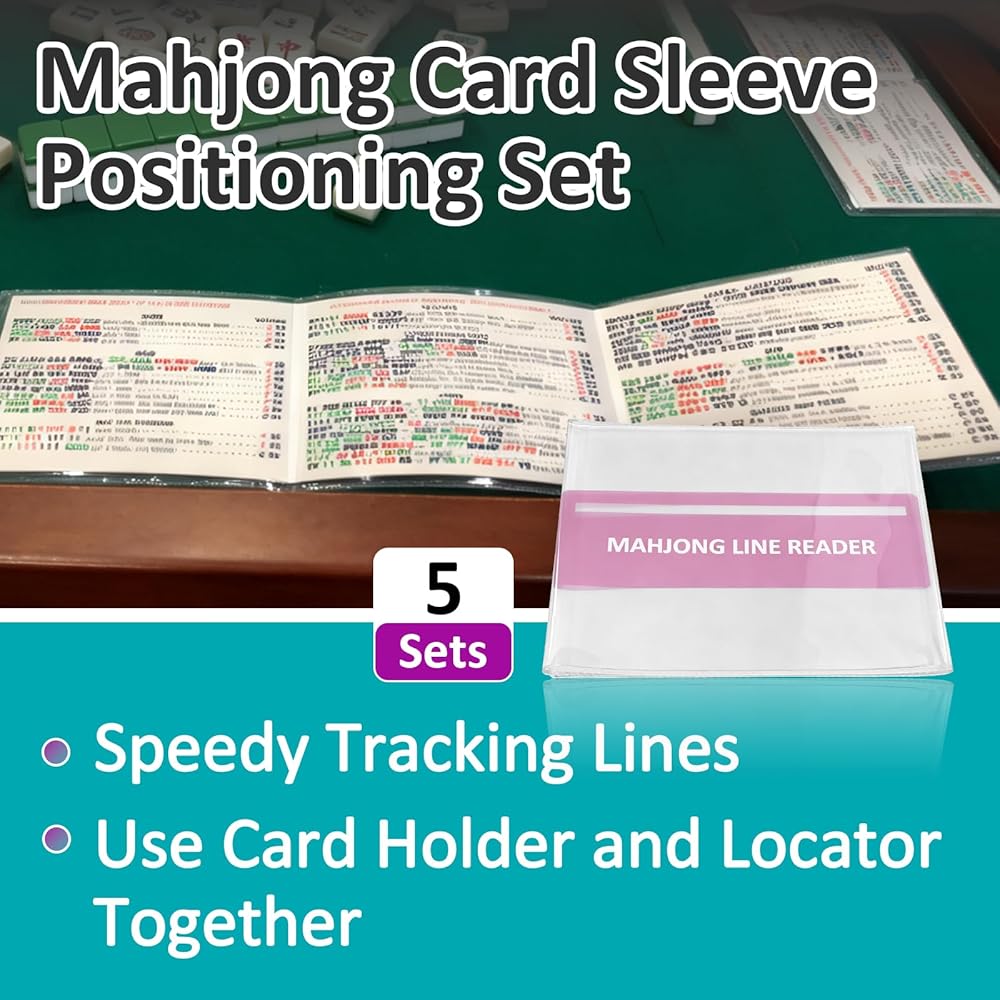 5 Sets Mahjong Card Sleeve Positioning Set, Including 5 Pcs Transparent Protective Sleeves and 5 Pcs Line Finders for Card Protection and to Quickly Identify Winning Numbers, Easy to Fold