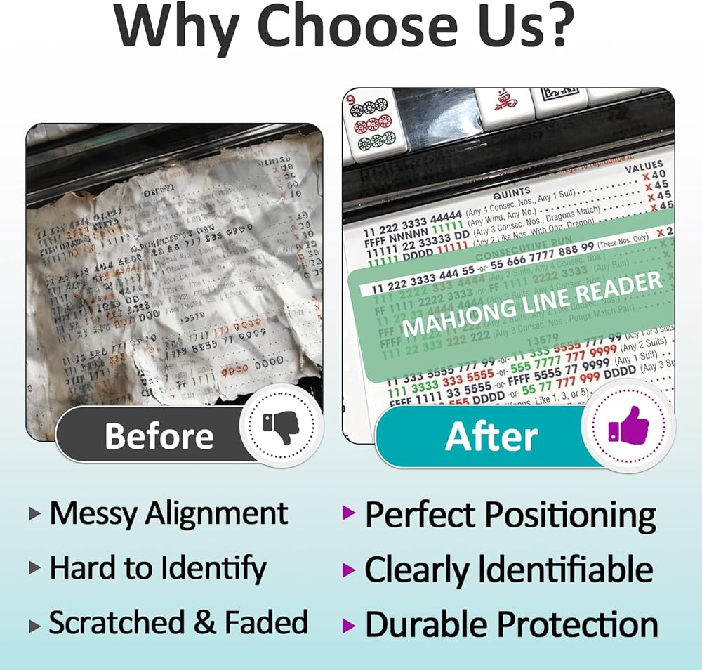 Enhanced Game Accuracy: The included mahjong line reader helps align and organize your cards, reducing misreads for a smoother and more accurate gameplay experience