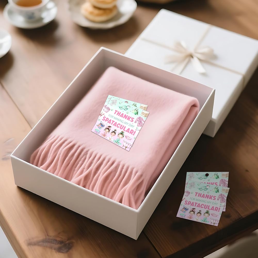 High-Quality Design: Our spa thank you gift tags are crafted with a durable material that ensures they last throughout your event. The vibrant colors and cute illustrations of girls in spa attire add a playful and elegant touch to any presentation, making them ideal Spa Birthday Party Supplies for Girls.
