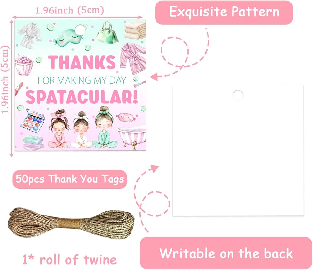 50Pcs Spa Birthday Thank You Tags Spa Day Gift Tag with String Thanks for Making My Party Spatacular Paper Tag Pampering Bday Party Tags for Girl Makeup Pamper Pajama Birthday Party Favors