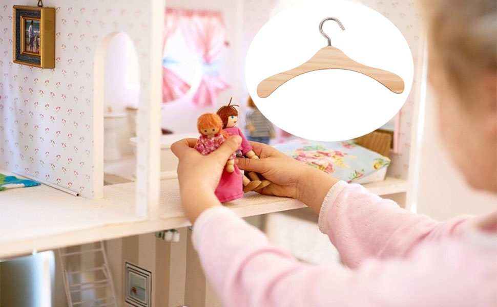 Doll clothes hanger wood doll outfit hanger wardrobe doll clothes accessories. a good for your kids to help them organize their dolls clothes