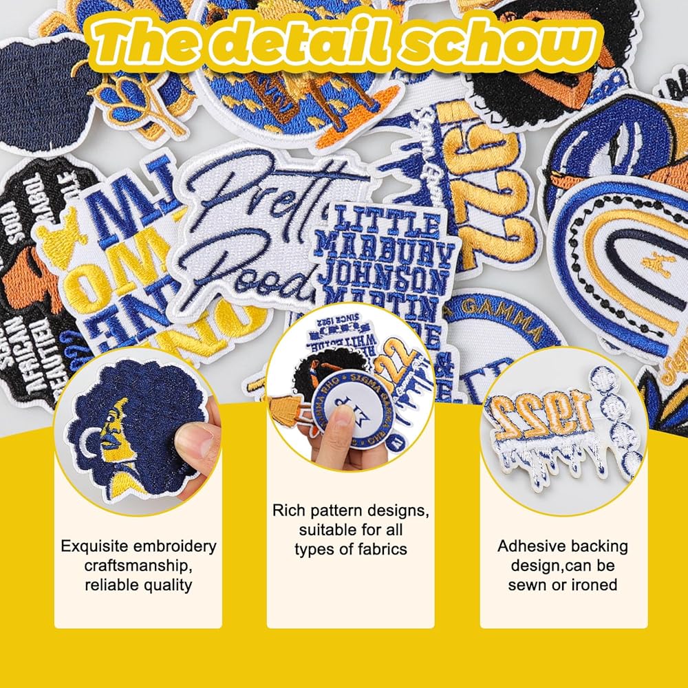 This 18pcs set features intricately embroidered ΣΓΡ sorority embroidery patches, crafted with durable threads and vibrant colors. Easily iron-on or stitch to jackets, hats, or tote bags for instant sisterhood pride. Whether as sorority gifts for women or personal keepsakes, these patches honor Sigma Rho Gamma's legacy. Each pack includes a mix of sizes for creative expression