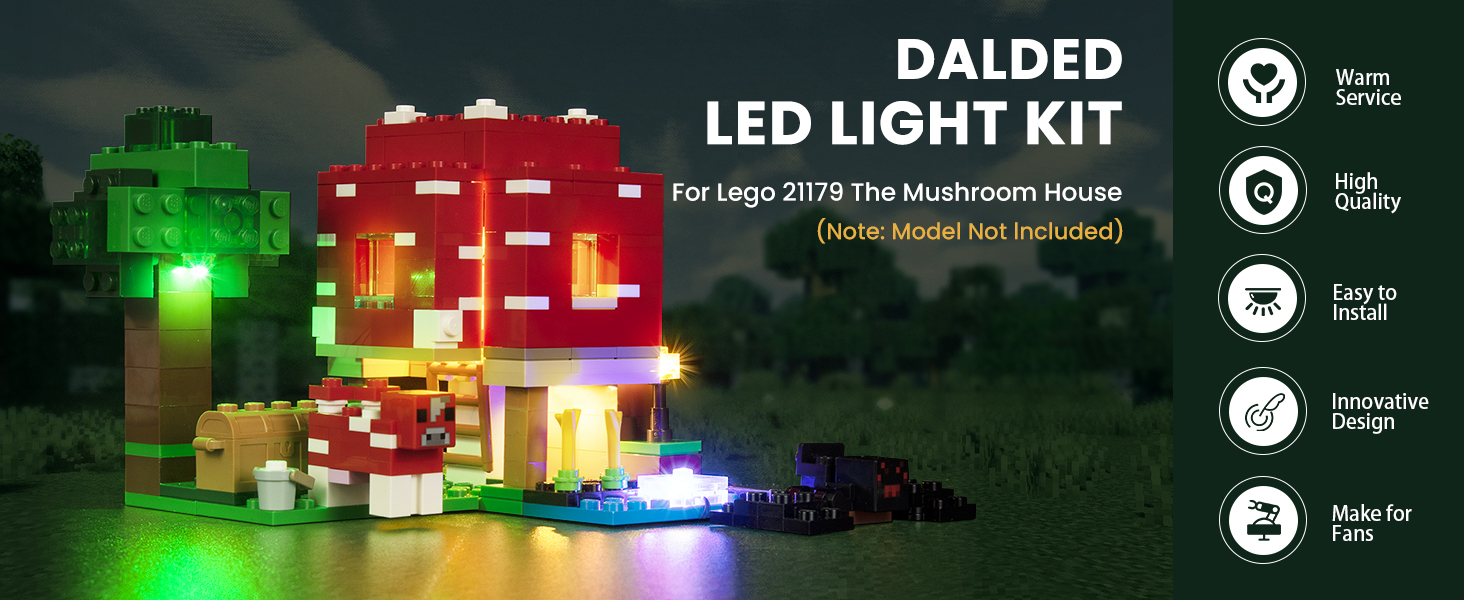 🍄 Upgraded Led Light Kit - DALDED light set is used to light up the building blocks compatible with Lego The Mushroom House 21179 Set.▲(𝙊𝙉𝙇𝙔 𝙇𝙄𝙂𝙃𝙏 𝙆𝙄𝙏, 𝙉𝙊𝙏 𝙄𝙉𝘾𝙇𝙐𝘿𝙀 𝙏𝙃𝙀 𝙈𝙊𝘿𝙀𝙇)▲ DIY enhances the playability of your building set and brings it to life and interesting with vibrant lighting effects.