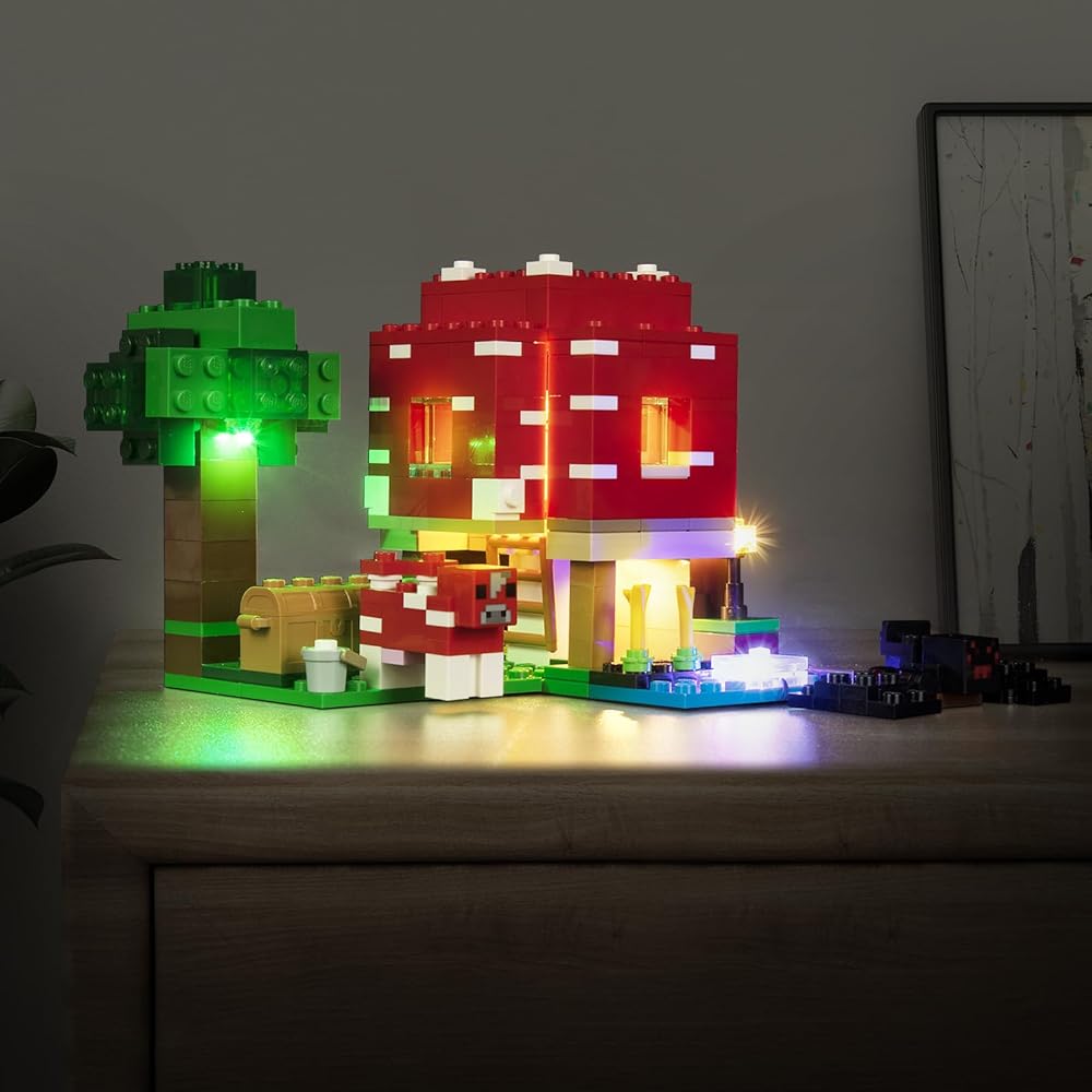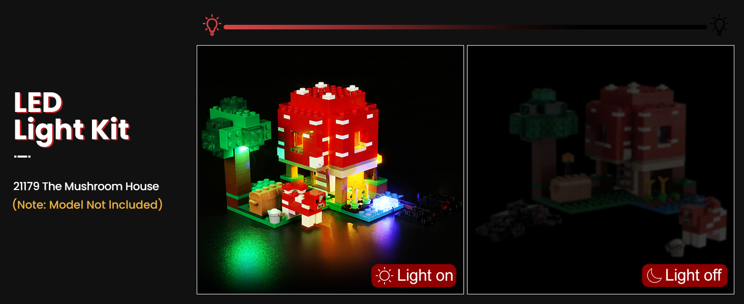 🍄 Multiple Play - Light kit Compatible with Lego The Mushroom House 21179 Set can be powered by USB (Voltage less than 5V). The lights will be brighter when powered by USB. Please test each light part before assembling.