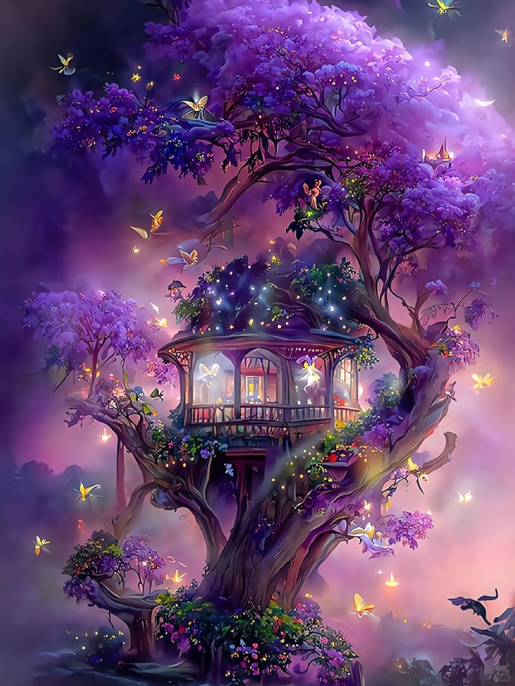 Purple Tree of Life Diamond Art Kits for Adults, 5D Diamond Painting for Beginners, Diamond Dot, Dimond Art Paintings Kit, Small Gem Painting Kit, Crafts for Adults, Home Wall Decor Gifts (12x16inch)