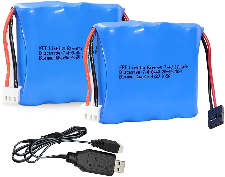 KBT Receiver RX Battery with Hitec Connectors 7.4V 1700mAh Lithium ion Rechargeable Battery Pack for RC Airplanes/RC Aircrafts and More