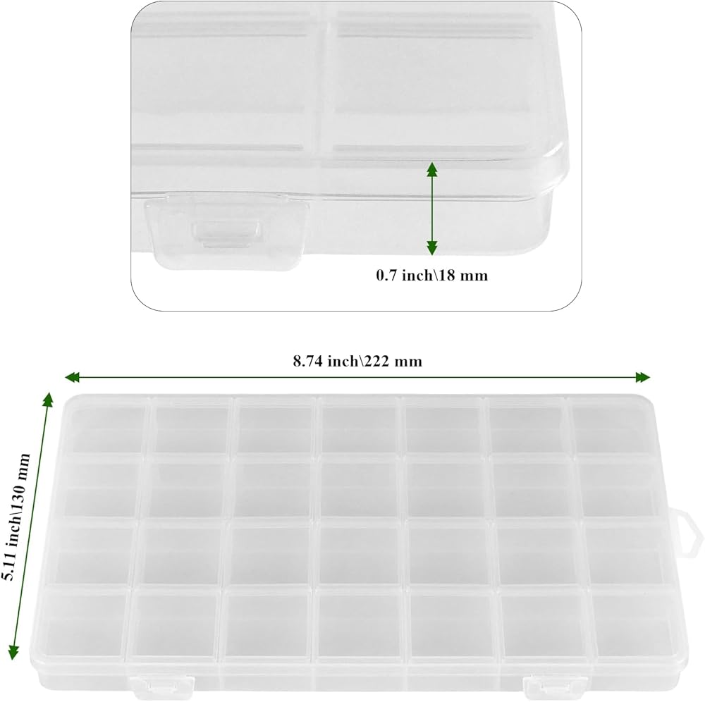 Perfect for organizing messy craft materials, this bead storage box features 28 equal-sized grids measuring 1.18x1.18 inches each. Compact size of 8.74x5.12x0.7 inches fits easily in drawers or travel kits, enhancing your creative workspace efficiency.