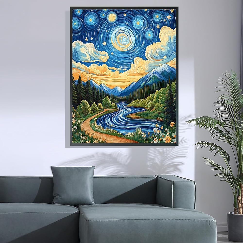 Hlison Paint by Numbers Kit for Adults, Moon Stream Landscape Paint by Number with Complete Sets, DIY Adult Paint by Number for Home Decor Gift - 16x20 Inch