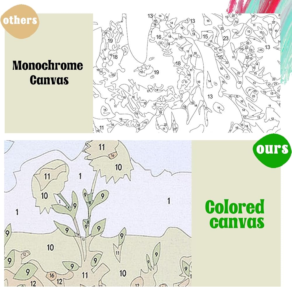 Paint by Number Kit for adults: Includes pre-printed linen canvas (numbered with colored lines), 30% extra acrylic paint, 3 professional brushes, a numbered reference guide, and hanging hooks—everything you need to create a masterpiece!