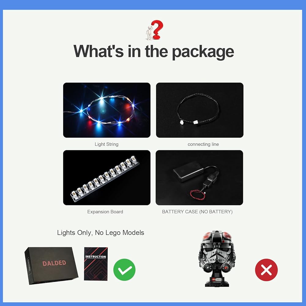 ⛑️ Upgraded Led Light Kit - DALDED light set is used to light up the building blocks compatible with Lego at-at Driver Helmet 75429 Set.▲(𝙊𝙉𝙇𝙔 𝙇𝙄𝙂𝙃𝙏 𝙆𝙄𝙏, 𝙉𝙊𝙏 𝙄𝙉𝘾𝙇𝙐𝘿𝙀 𝙏𝙃𝙀 𝙈𝙊𝘿𝙀𝙇)▲ DIY enhances the playability of your building set and brings it to life and interesting with vibrant lighting effects.