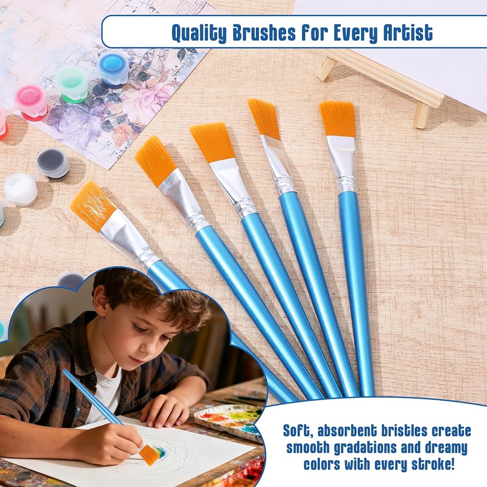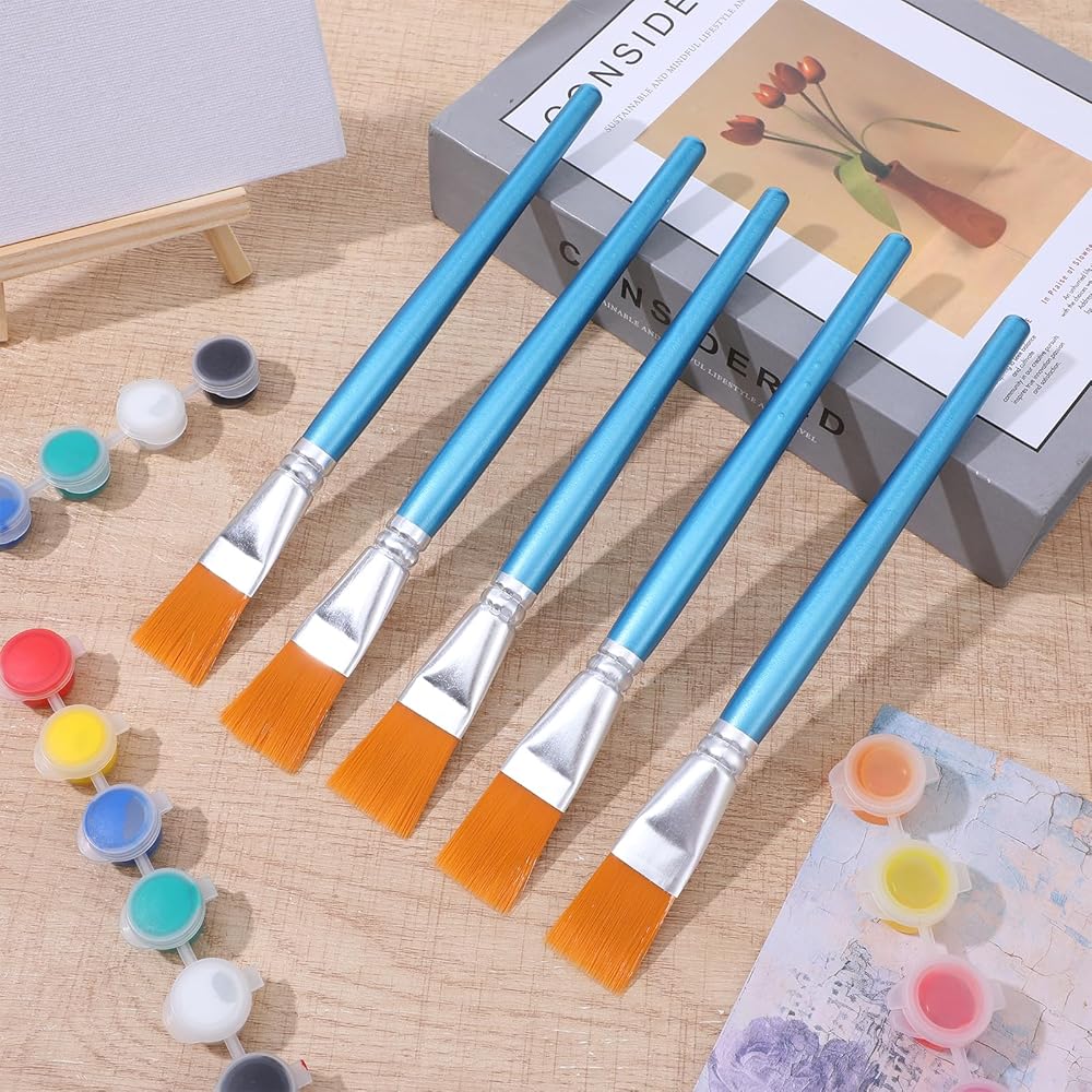 Heat-resistant nylon bristles withstand rigorous scrubbing. Simply rinse with soapy water - bristles spring back to original flat paint brushes shape for repeated professional use. Maintains integrity of acrylic paint brushes and craft paint brushes set.