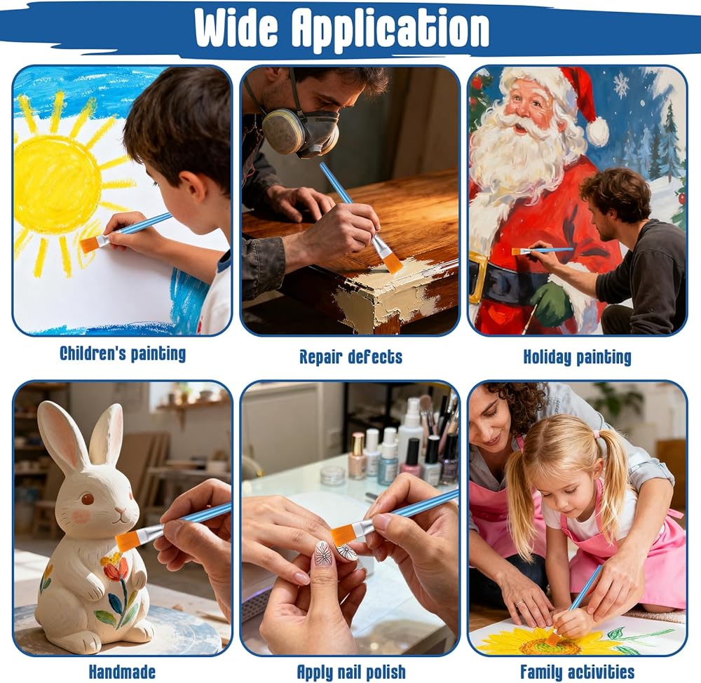 The 1" large paint brushes deliver studio-quality strokes with chisel-edge precision. Engineered for large acrylic paint brushes demanding projects: wood graining techniques, acrylic washes, and seamless body painting transitions. Includes small paint brush for detailing.