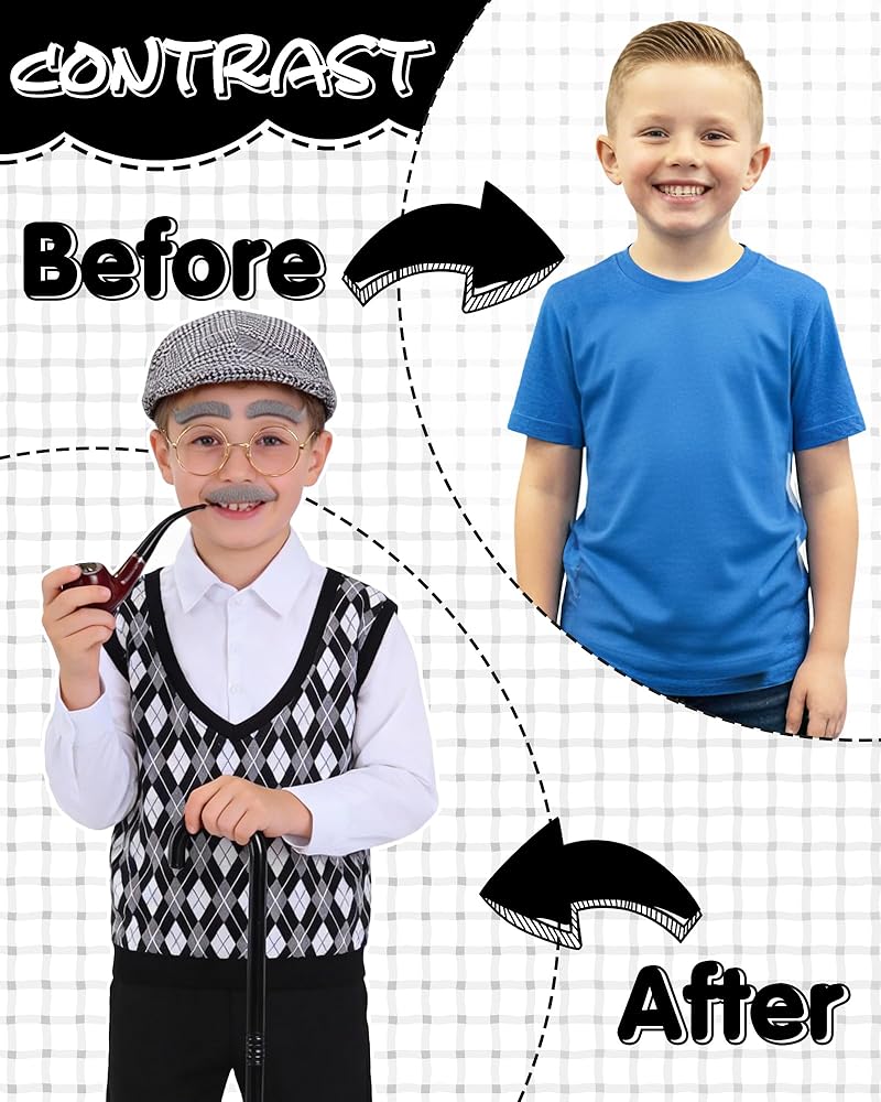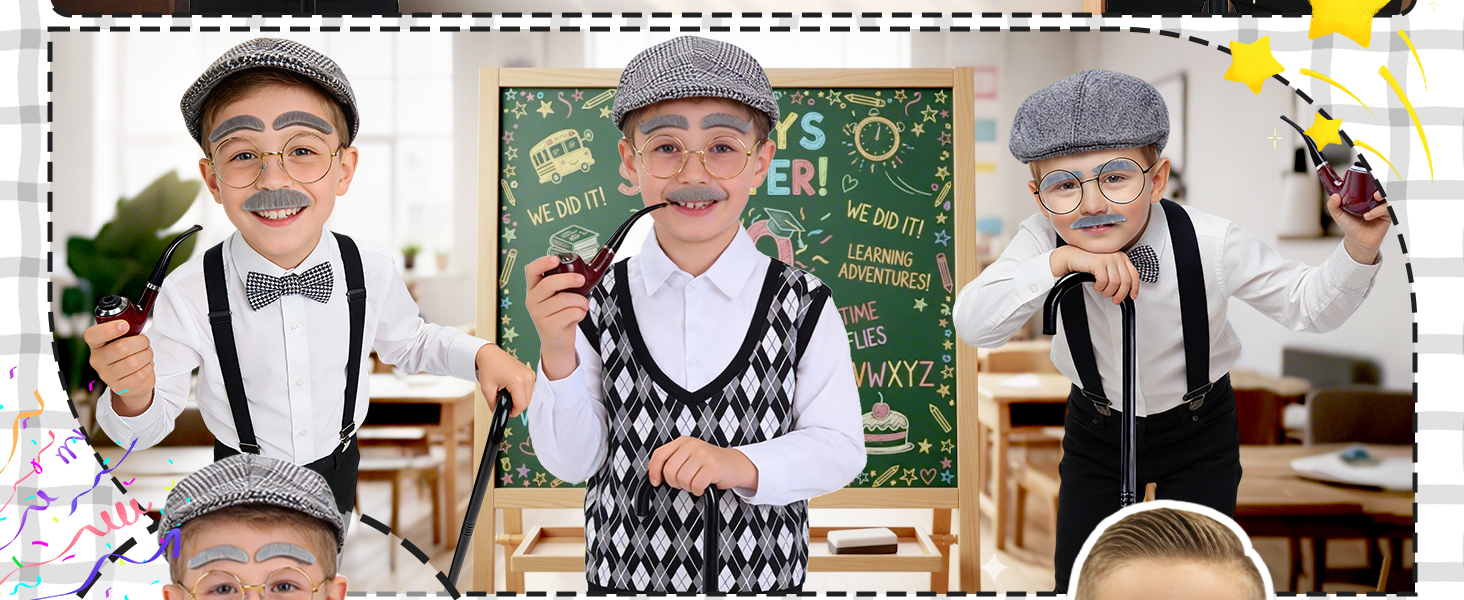 Versatile Use: Ideal for 100 Days of School events, Halloween, themed parties, school plays, or family photos. This all-in-one grandpa costume guarantees endless fun and unforgettable pictures