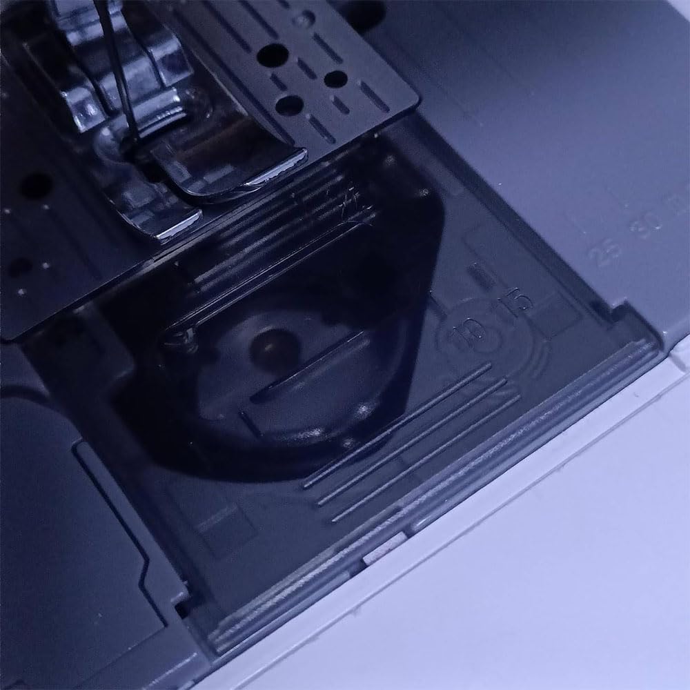 【Visual Design】The bobbin cover plate design allows users to visually inspect the remaining thread on the bobbin. This feature enables users to determine in advance whether the bobbin thread is sufficient without interrupting the sewing process, allowing for timely replenishment. It helps maintain workflow continuity, avoids thread breaks or work stoppages due to running out of bobbin thread, and optimizes the overall work process.