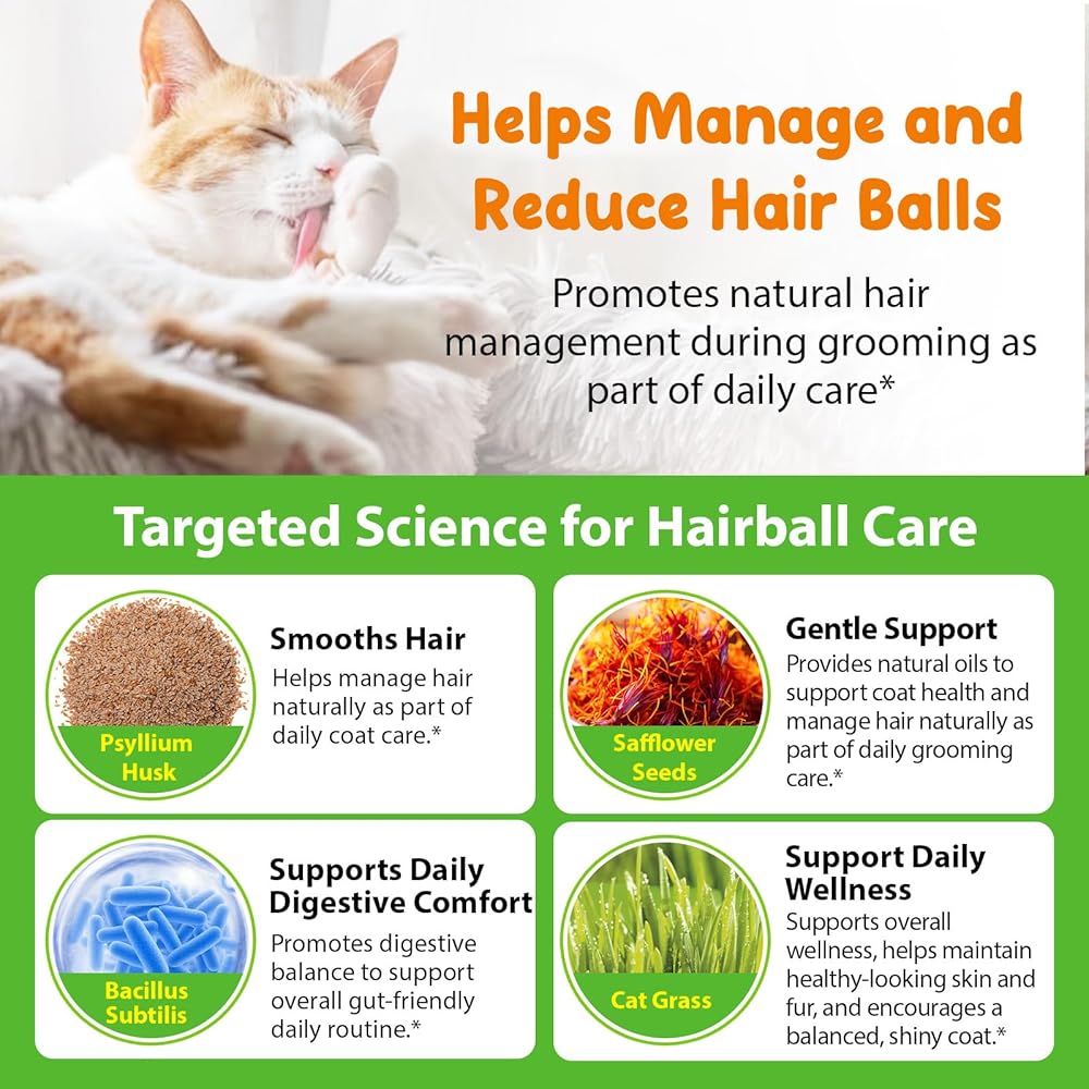 • 🐾Helps Reduce & Prevent Hairballs: Our advanced hairball relief formula supports natural furball elimination and helps prevent future build-up. Ideal for cats that groom frequently, shed heavily or struggle with recurring hairballs.