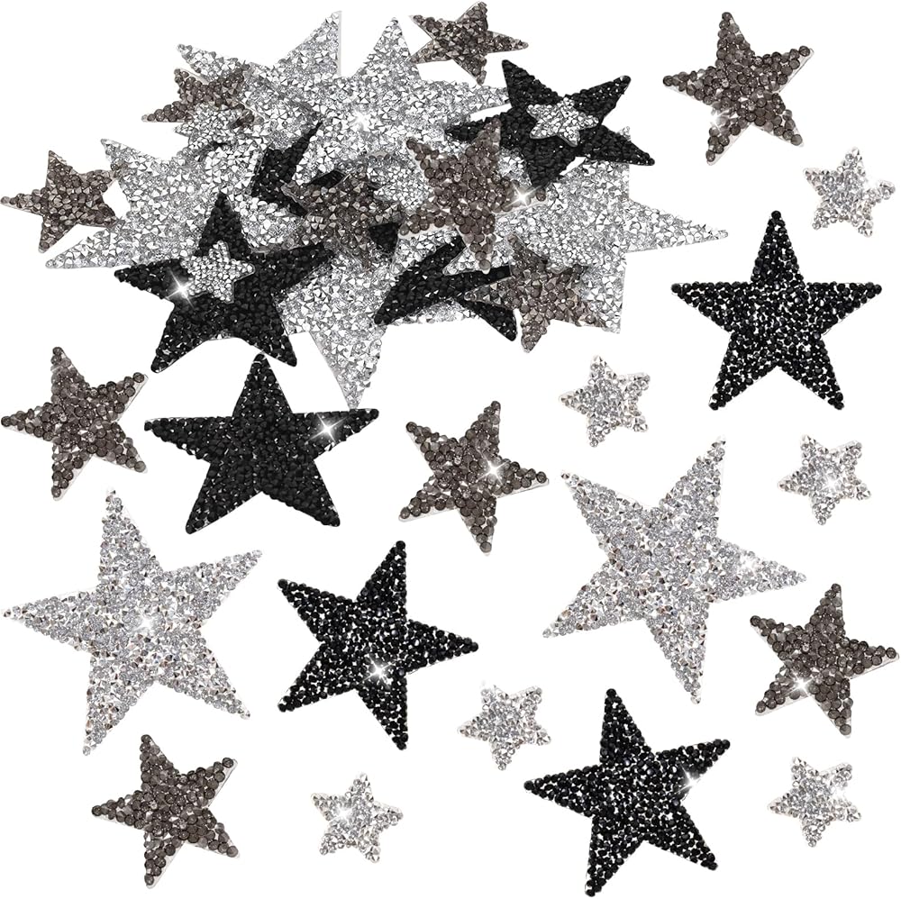Elevate your DIY fashion projects with our stunning star iron on patches! This versatile set includes 24 high-quality star clothing patches adorned with sparkling rhinestone appliques, great for adding a touch of charm to your favorite outfits. Whether you are customizing jackets, bags, or accessories, these star patches designs will make a fearless attempt.