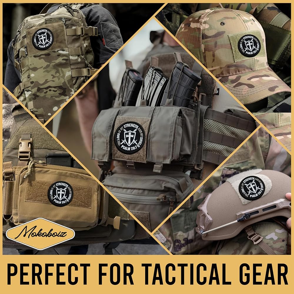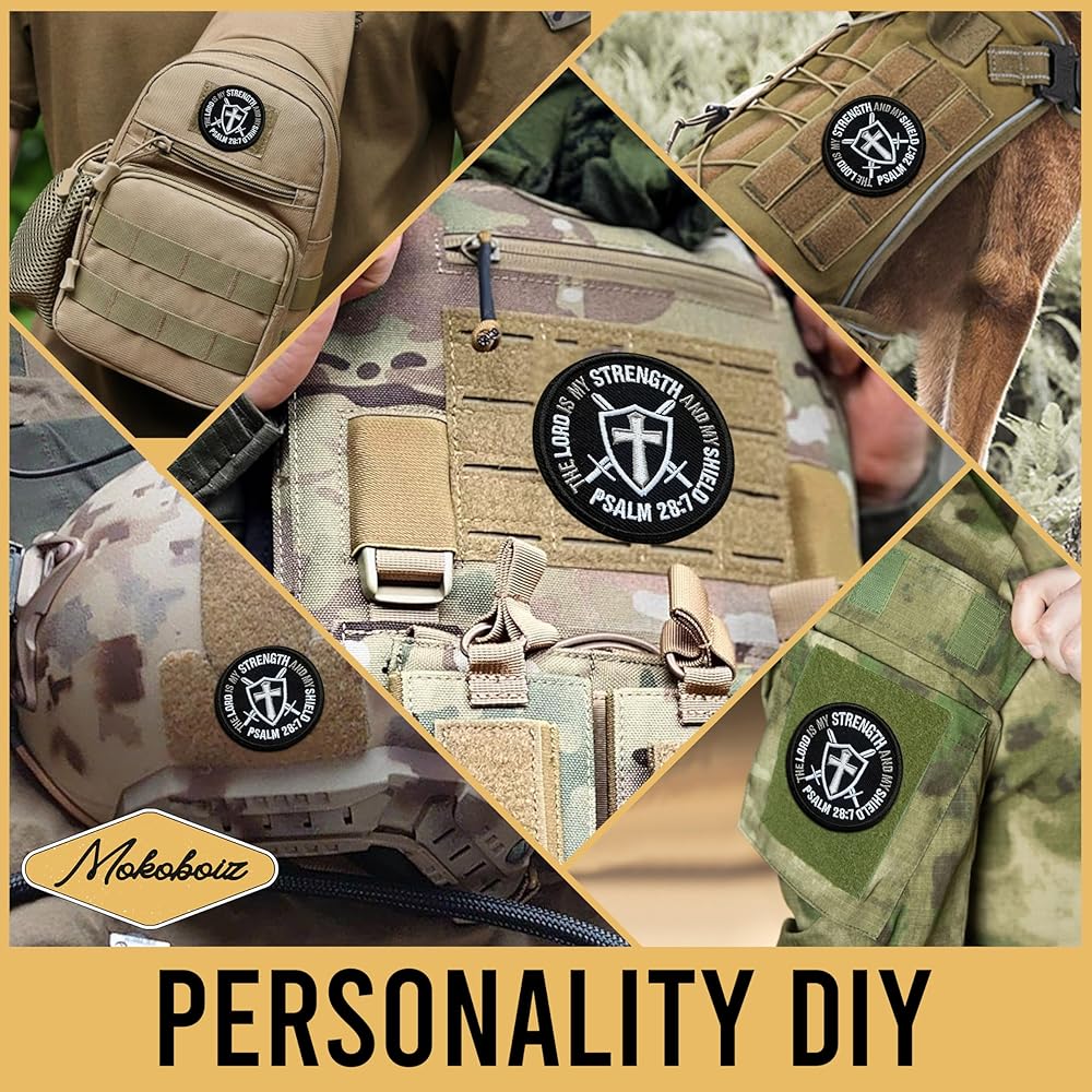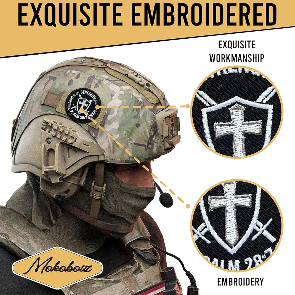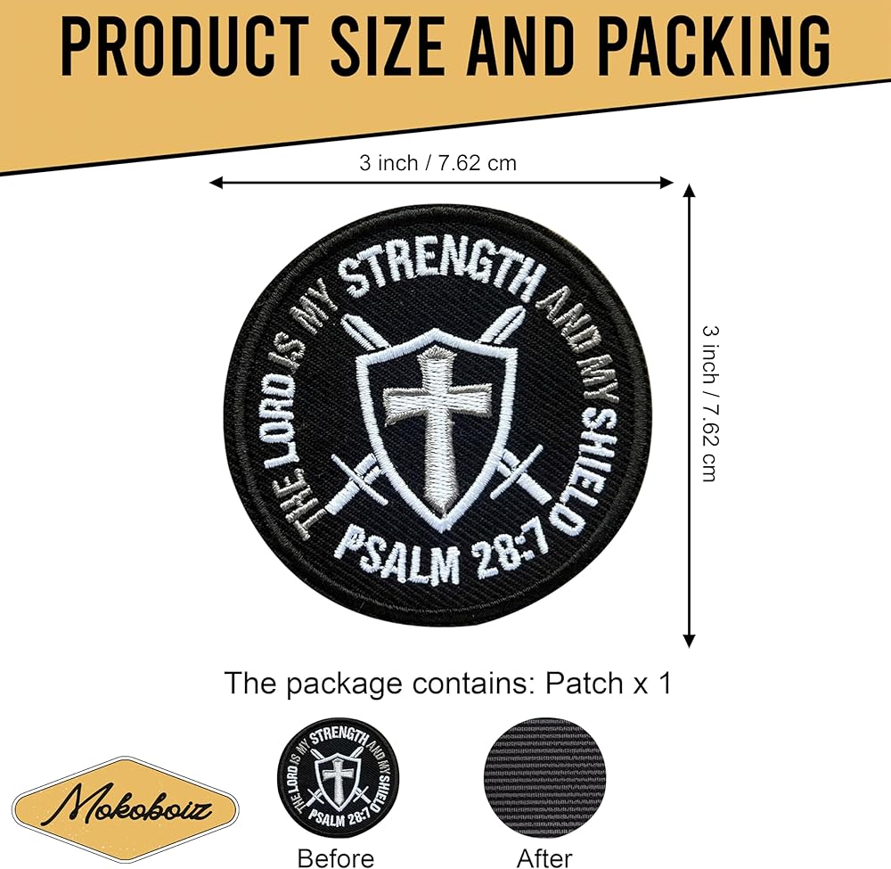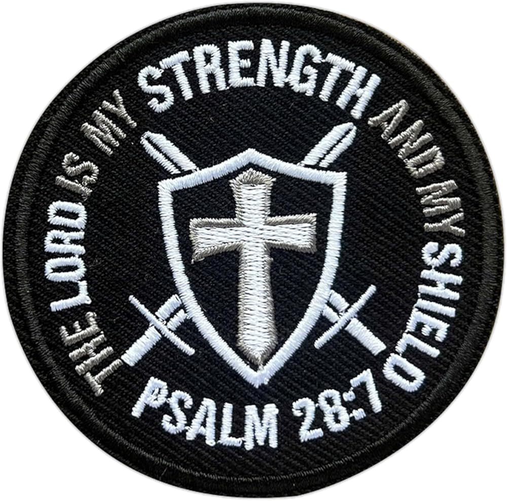 The Lord is My Strength and My Shield 3 Inches Hook and Loop Embroidered Applique Patches, Cross Embroidery Patch, DIY Accessories for Backpacks Army Vests Dog Harness Clothes, Worship Gifts