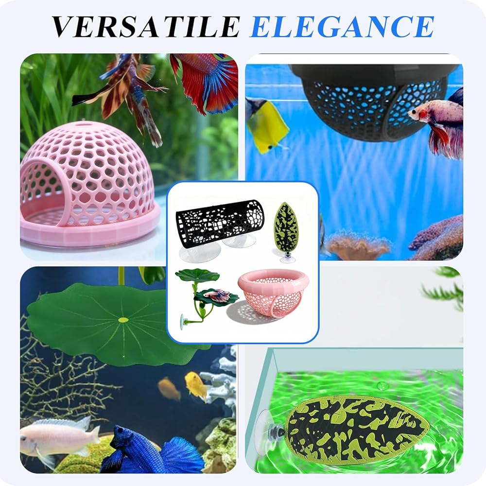 Enhance Your Aquarium with Versatile Betta Fish Tank Accessories: This set includes multiple betta toys such as a betta hideout and floating betta hide, providing various spaces for your fish to explore and rest; The combination of fish hammock and betta fish tank plants enriches the habitat and encourages natural behaviors