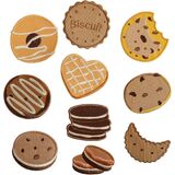 Add a delightful touch to your crafting projects with these 10 charming self-adhesive cookie-themed patches. Each patch features adorable biscuit designs including chocolate chip cookies, sandwich cookies, heart-shaped treats, and decorated donuts rendered in sweet, appetizing colors. The collection includes various styles and shapes that capture the essence of everyone's favorite baked treats. These decorative patches are perfect for personalizing backpacks, notebooks, fabric items, or craft projects. The self-adhesive backing makes application quick and simple - just peel and stick to transform ordinary items into something special. The patches feature detailed designs that bring these beloved treats to life in patch form. Whether you're a baker, cookie lover, or just looking to add some whimsical charm to your belongings, these patches offer a fun way to showcase your sweet side.