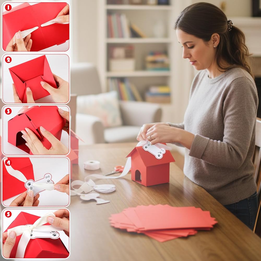 These lightweight yet durable red dog house themed party boxes are built for lasting use. The high-quality card stock ensures they hold their shape, protecting their contents. Their appealing design and functional size make them a great choice for party planners looking for reliable and attractive dog party favors boxes that guests will appreciate.