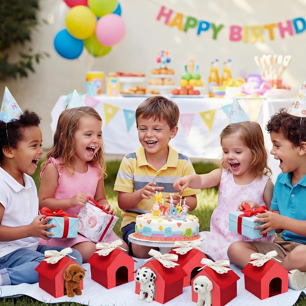 Elevate your party decor with our vibrant puppy birthday favor boxes. The classic red doghouse design creates a cohesive and cheerful atmosphere for your puppy-themed party decorations. Beyond holding gifts, these boxes themselves act as charming decorative pieces on tables or as part of a centerpiece, enhancing the overall party experience.