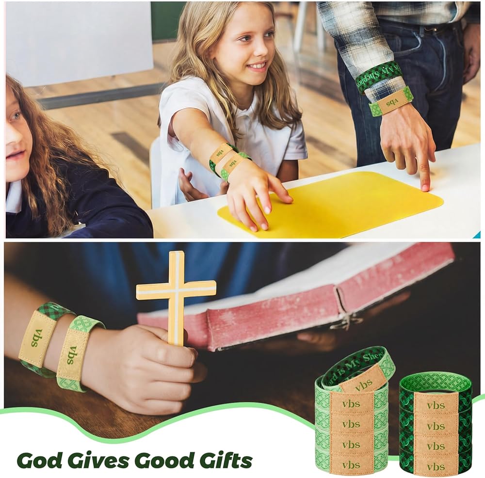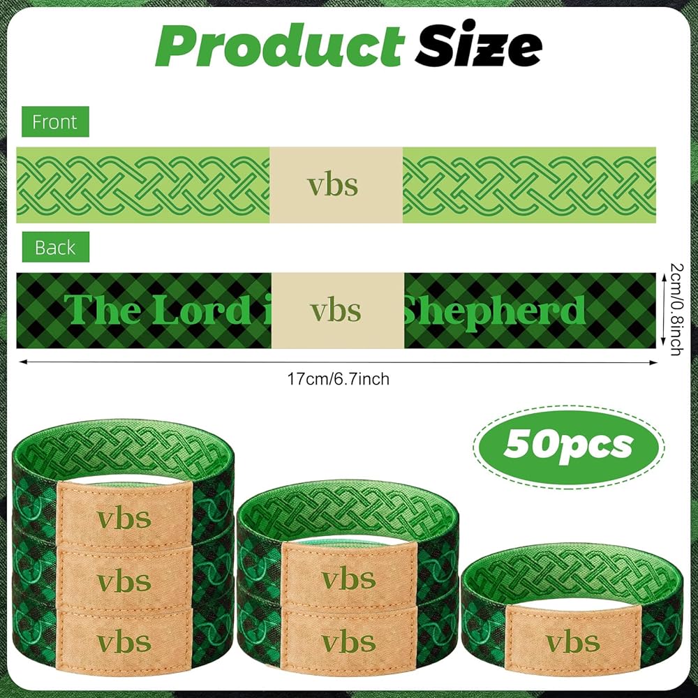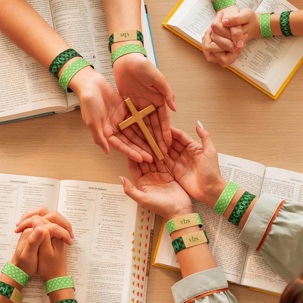 Dressed in a vibrant grass green hue, these wristbands are a nice match for the the lord is my shepherd VBS 2026 theme. Their bright, distinctive color adds a stylish flair to any outfit, and they can even be applied to decorate event spaces (such as balloon garlands or Bible study tables).