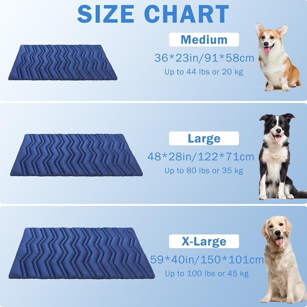 COOLING DOG BEDS FOR LARGE DOGS: Size L -- 48" x 28". Fits pets up to 80 lbs, such as Samoyed, Husky, Border Collie, etc. Our cooling dog bed supports hand or machine wash, easy to clean and maintain without worrying about hair or dander. Simply throw it in the washing machine for a quick and easy clean